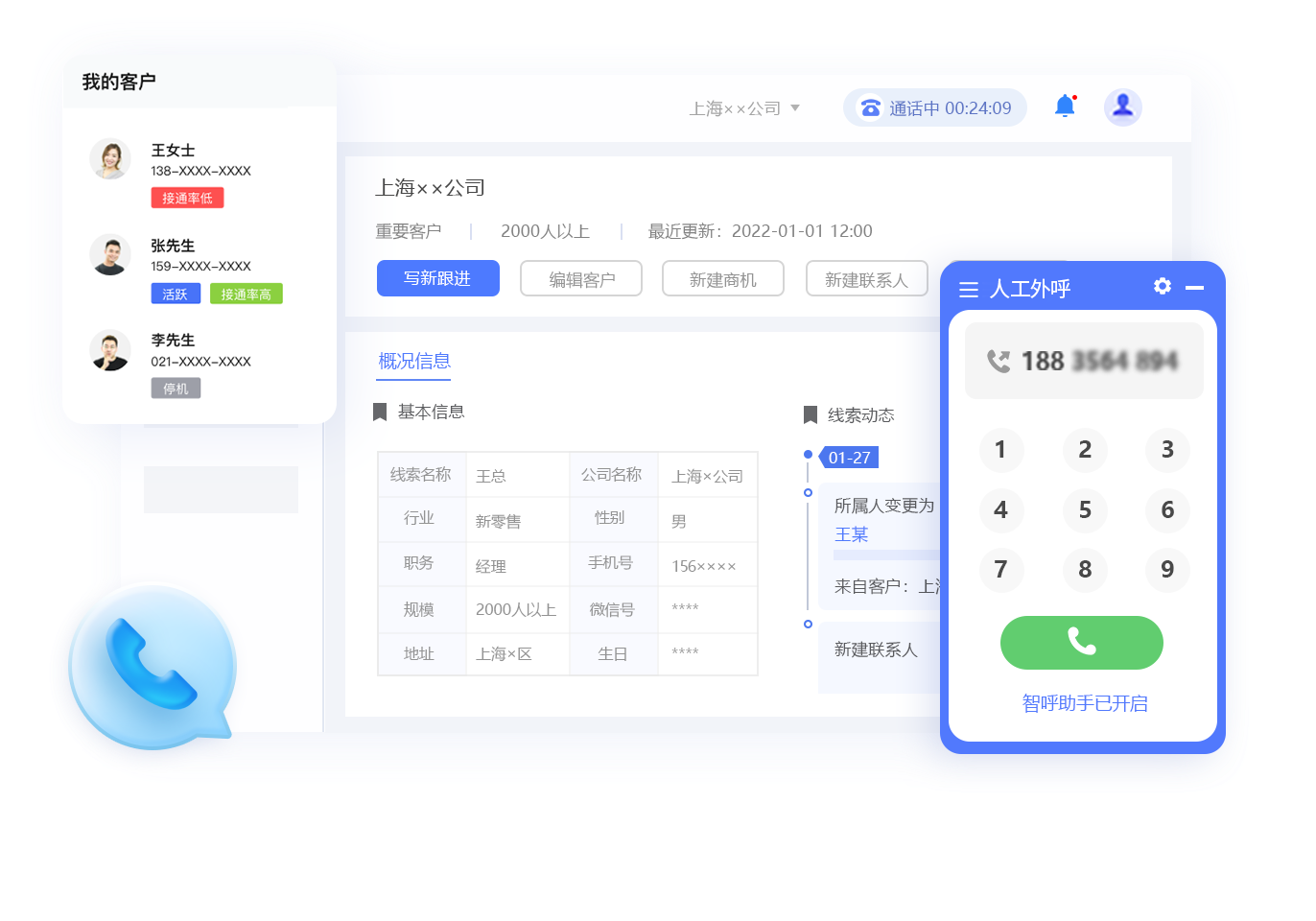 丰富线路灵活筛选稳定通话,商机一站式接入,大数据加持